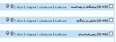 2. مرتبسازی صفحات یکی از ابزارهای برنامه برای سازماندهی محتوا، فلش های جابجایی صفحات و مطالب می باشد. گاهی به دلیل جابجایی مکرر یا حذف برخی مطالب و صفحات، دکمه های بالا و پایین بردن صفحات و مطالب دقیق عمل نمی کنند. در این شرایط لازم است یکبار از بخش "تغییر سطح و جابجایی جمعی و سریع صفحات و مطالب" که در بالای این بخش ها قرار دارد، با وارد کردن اعداد ترتیبی، تنظیم چینش مطالب و صفحات انجام شود.